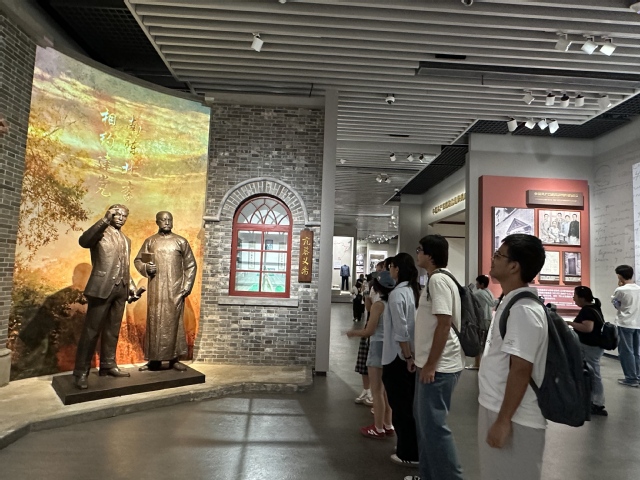 第一站,师生一行抵达中共一大纪念馆。在纪念馆讲解员的引导下,同学们有序参观各个展区。馆内陈设犹如一堂生动的“党史课堂”:一系列记录光辉历程的展墙清晰勾勒出中国共产党从萌芽到发展壮大的历史脉络;众多珍贵文物与历史资料,从泛黄的文件到斑驳的实物,无声讲述着建党先辈的初心使命与奋斗精神。通过系统参观,同学们深刻认识到中国共产党诞生的历史必然性与伟大意义,进一步激发了同学们的爱国热情与使命担当。