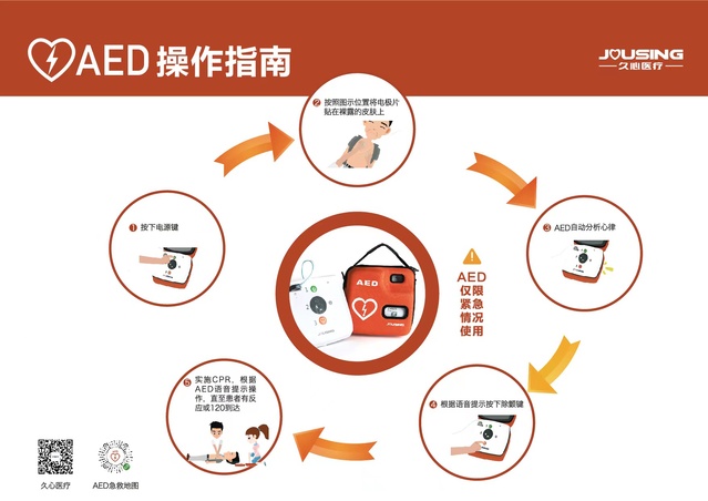 AED(Automated External Defibrillator),指自动体外心脏除颤器,是一种便携式、易操作,专门为非医学专业人士现场急救心脏骤停患者而设计的急救设备。它可以自动分析患者心律,判断是否需要除颤,若需要除颤,AED会自动充电,充电完毕后提示施救者按下电击按钮进行除颤;若不需要除颤,AED会建议实施 CPR。因此又被称为“救命傻瓜机”。