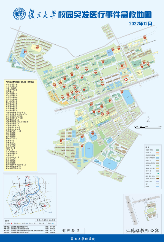 为了更好的保证师生生命健康,打造“平安校园”,我们在四个校区陆续安放AED,目前我校AED的数量已达64台,后续会继续按照标准配置。同时我们同步更新了学校的急救地图,并在校医院分期分批对教职工开展急救技能培训。我们有先进的急救培训教室、模拟人、AED教学机,理论加实操小班化教学,每月开展2次。目前已培训教职工230余人。旨在不断扩充急救员队伍,并提高师生自救互救能力。具体事宜可咨询:65642071。