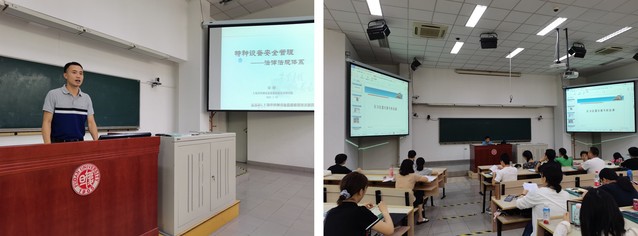 资产与实验室安全管理处副处长张义作动员讲话,他首先向在座的师生简要介绍了学校近期面临的安全形势,提醒大家要留意实验室中的细节安全,特别是在夏季高温环境下要特别注意个人防护是否到位。张义强调,特种设备安全是实验室安全的重要组成部分,持有特种设备安全管理与作业人员证是管理与使用特种设备的前提与基础。全校师生要在安全与合规两方面下功夫,希望大家以本次培训为契机,加强学习,争取一次性通过考试。